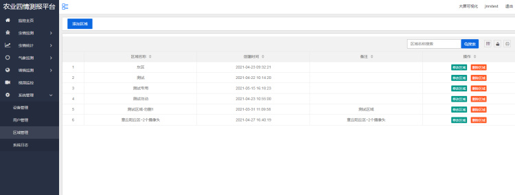 區域分析:選擇區域,選擇時間后點擊查詢即可查詢出所選時間段區域內蟲情設備的害蟲數量。